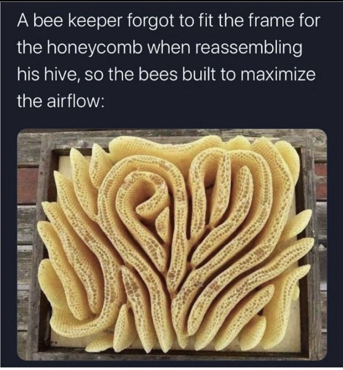 Den här bilden är för läcker, hur bina valde att forma sina kakor när odlaren glömde sätta i mellanväggar. 😍
