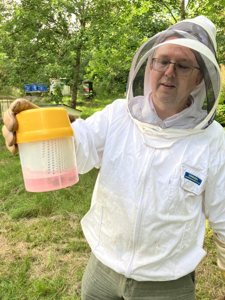 Under vårens sista måndagsmöte med tema varroa gick vi igenom en varroa-kontroll enligt skakmetoden i praktiken. Vi rekommenderar att ni gör varroa-kontroll under andra delen av juli för att få koll på mängden och att hinna behandla i tid om det behövs innan vinterbina föds!